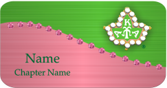 1.5"x3" AKA Two Tone 20 Pearls Swirl Bling Name Badge with salmon pink and apple green background.
