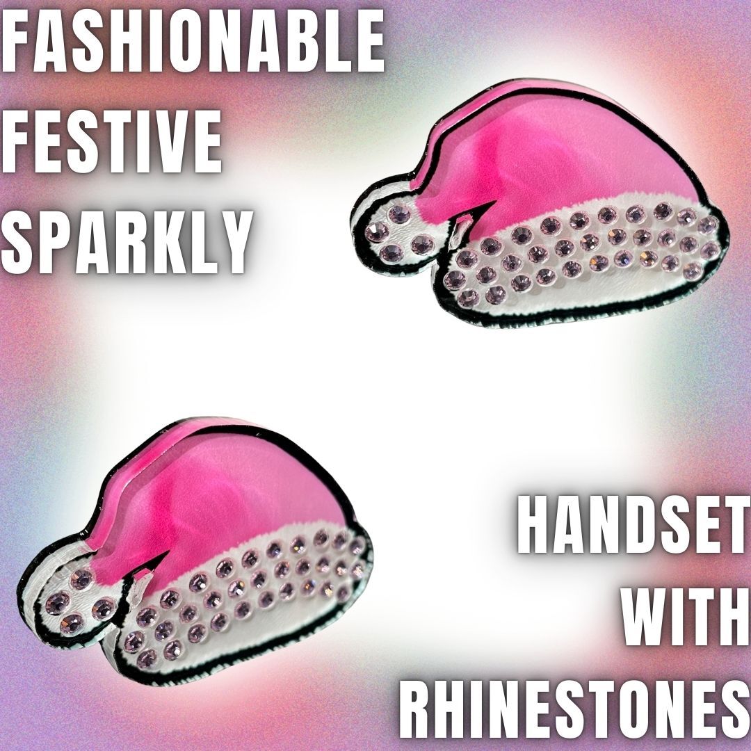 Add a chic touch to your holidays with our Pink Santa Hat Pin! This eye-catching design features soft pink acrylic and is handset with clear rhinestones for a festive sparkle. Lightweight and easy to wear, it’s a perfect addition to your holiday style or a unique gift.