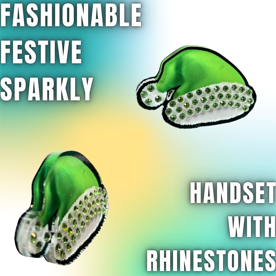 Celebrate the holidays with the fresh look of our Green Santa Hat Pin! Crafted from premium acrylic, this lively green design is handset with clear rhinestones, making it the perfect festive accessory.