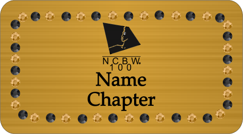 GOLD RECTANGLE BLING NAME BADGE WITH GOLD AND BLACK RHINESTONES