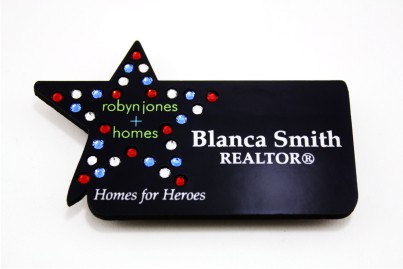 "1.5x3" Black Star for Heroes with Red, Blue, Clear Stones along with Magnet backing