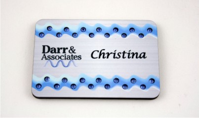 "2x3" Silver Flag for Heroes Bling Name Badge with red, blue, clear stones along with magnet backing.